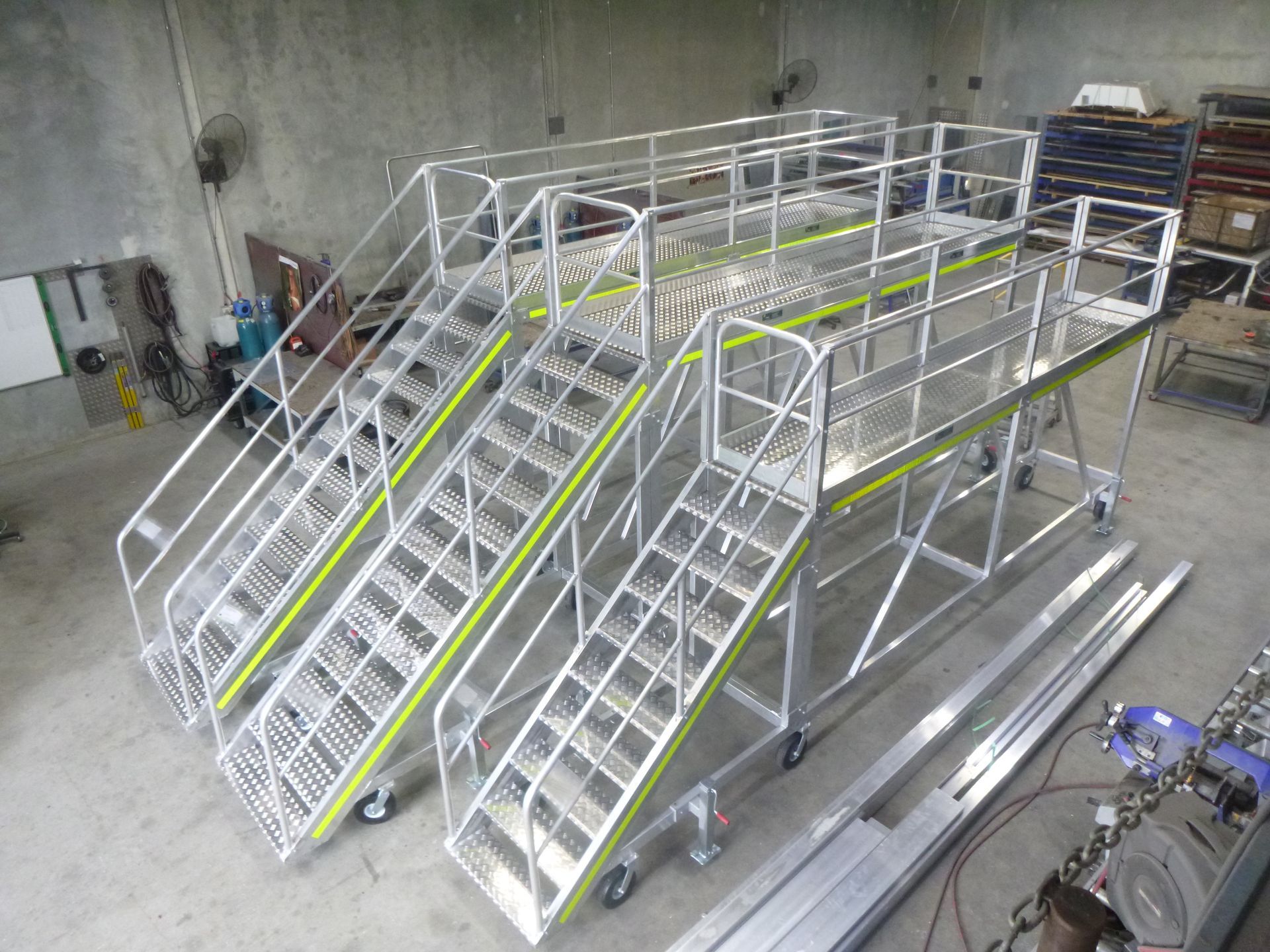 Platforms are primarily made from aluminium due to their lighter weight and resistance to the elements; however, we can also manufacture them in steel and stainless when required.